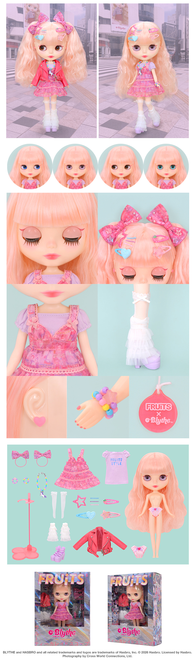 This is a heart-fluttering collaboration with “FRUiTS,” a special doll designed with the theme: “What if Blythe were featured in FRUiTS?”